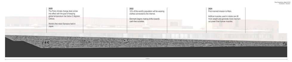 This is a public art proposal for the Väre Building Student Art Competition. Responding to the theme of Global Equality, this artwork proposed to use the building wall to depict global predictions of every year from 2019 - 2025, which was the estimated lifespan of this work.